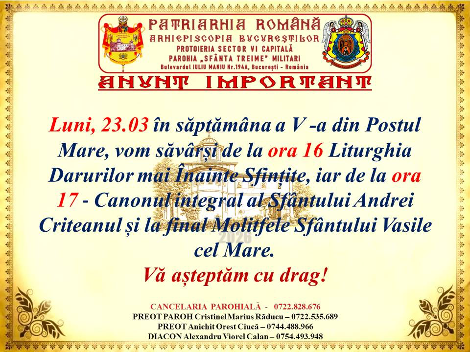 “Pomenește Doamne pe binecredincioșii creștini – ctitori, binefăcători , închinători ai sfânt locașului acestuia și pe toți cei dragi ai sufletelor noastre adormiți întru nădejdea Învierii.”